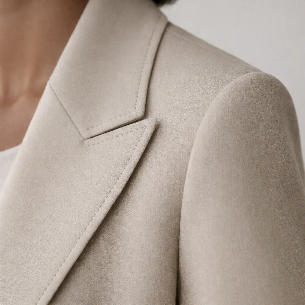 Fabrics with higher drape behave differently. Materials such as silk, viscose, crepe, or lightweight wool move more easily and fall into natural folds. Instead of holding a firm outline, they follow the shape of the body and create softer, more fluid lines.